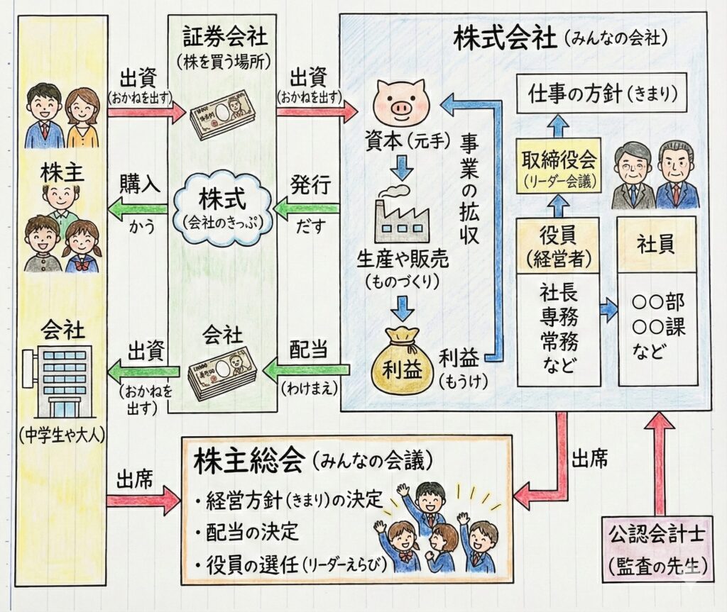 - 出資者(お金を出した人):株主(かぶぬし)と呼ばれます。