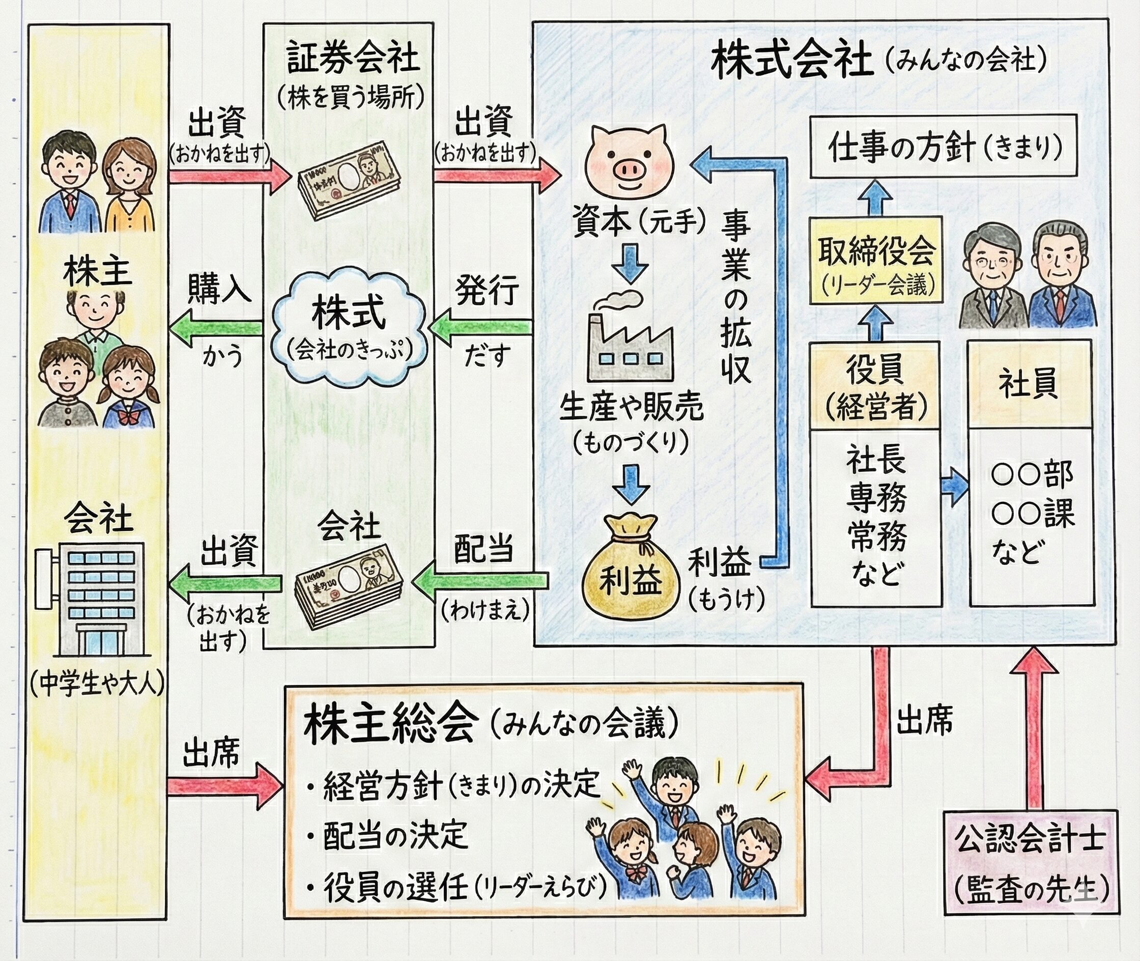 「株式会社」ってニュースでよく聞くけど、結局何をしているところか知っていますか? 「大人がスーツを着て難しい会議をしている場所」……そんなイメージがあるかもしれませんが、実は仕組みはとってもシンプル。