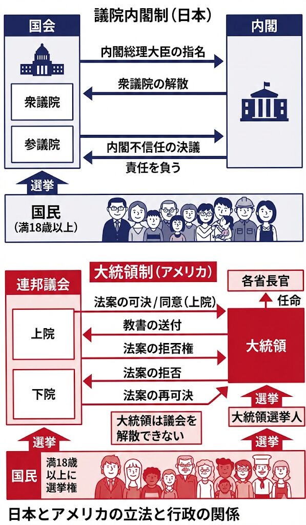 3. 日本の「議院内閣制」vs アメリカの「大統領制」