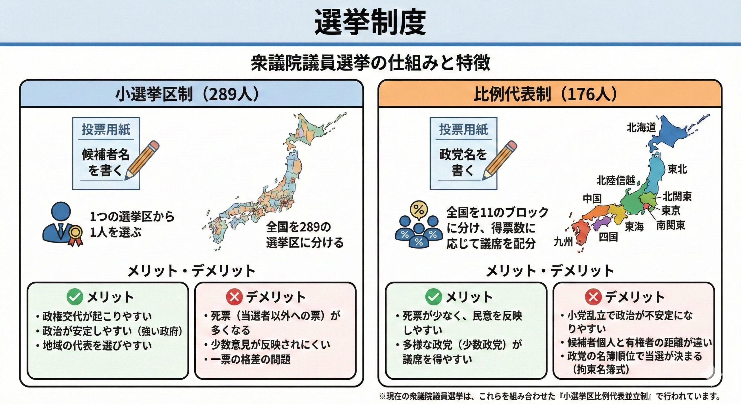 「小選挙区制と比例代表制のメリット・デメリット」