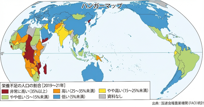 - 栄養不足が深刻な地域:アフリカ州など。人口の35%以上が栄養不足の国もあります。