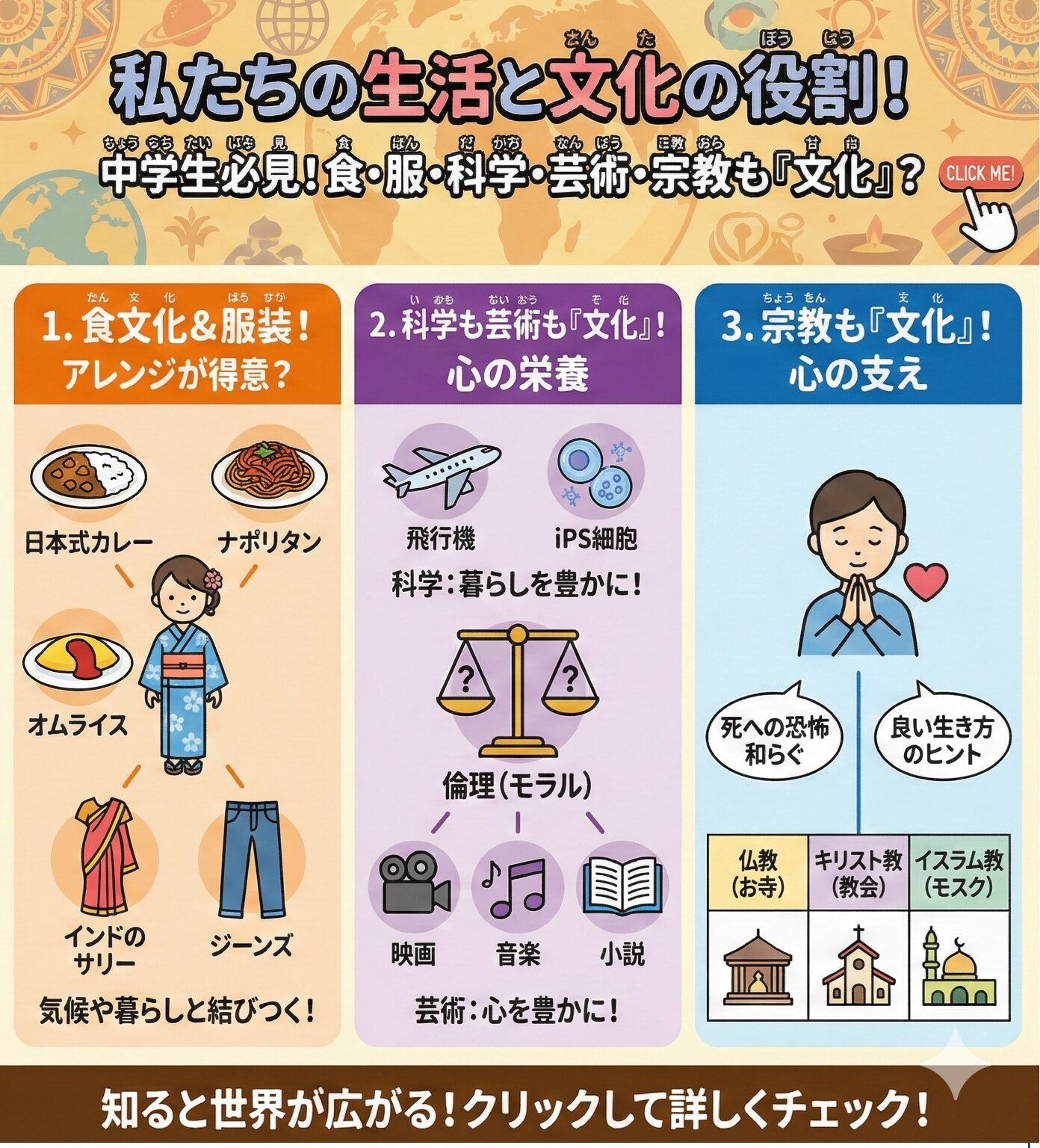「文化」と聞くと、美術館にある高価な絵画や、伝統的なお祭りを想像するかもしれません。しかし本当の文化は、もっと身近で、もっとダイナミックなものです。今回は、科学、芸術、宗教という3つの切り口から、文化の役割と課題をどこよりも分かりやすく解説します。