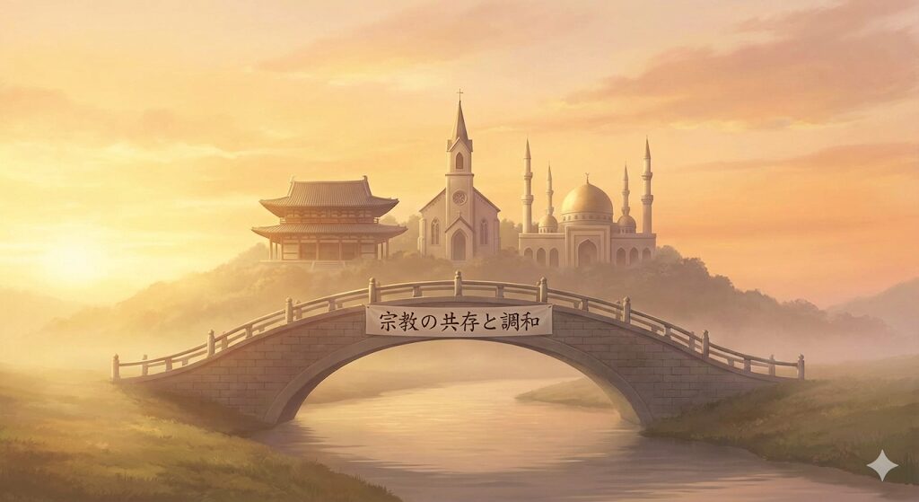 【宗教の課題】 グローバル化が進む現代では、異なる信仰を否定するのではなく、互いに理解しようとする異文化理解の姿勢が不可欠です。