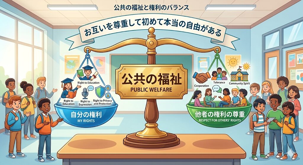 - 自分が騒ぐことで、他の人の「静かに学習する権利」を奪ってはいけません。権利は「わがまま」を通すための道具ではなく、お互いを「個人の尊重」として大切にするためのものなのです。